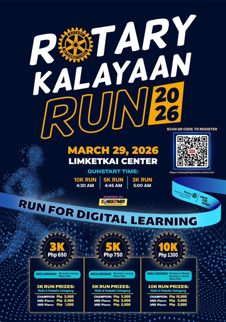Unsa pai ginahulatan ninyo, apil na sa Rotary Kalayaan Run 2026 karong Marso 29, 2026 sa Limketkai Center. 🏃🏃‍♀️🏃‍♂️